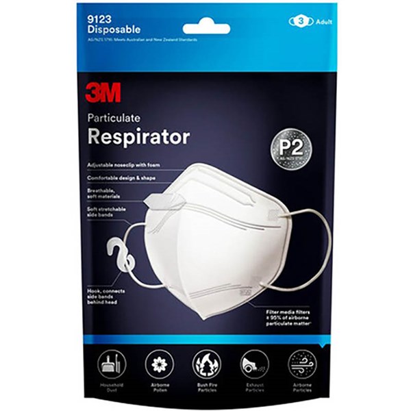 The 3M Particulate Respirator 9123 is a maintenance-free, flat fold P2 disposable respirator that is intended for use by consumers used in consumer applications (and other users where permitted by applicable regulations) to help reduce exposure to certain airborne particulate matter