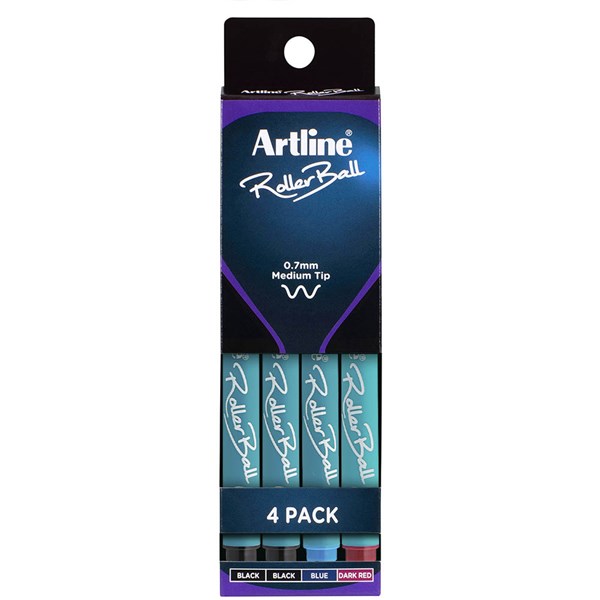 ARTLINE ROLLERBALL PEN 0.7MM ASSORTED PACK 4