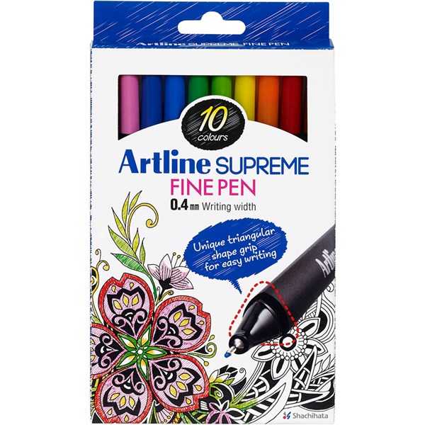 ARTLINE SUPREME FINELINER PEN 0.4MM ASSORTED PACK 10
