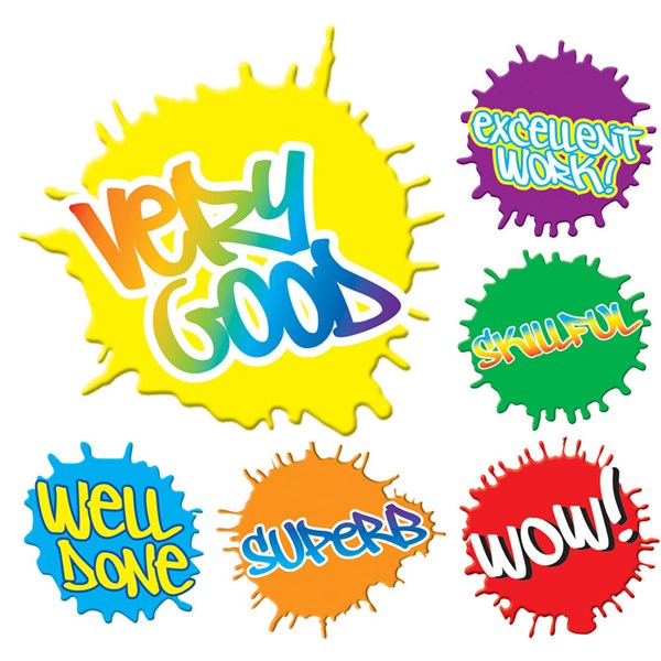 - Fun words on paint splat designs kids will feel proud to receive