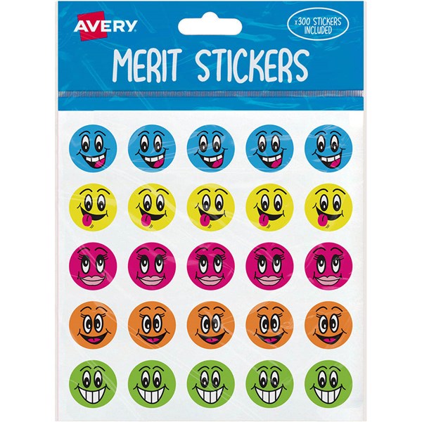 Avery Merit Stickers are great for rewarding good work and behaviour at home or in the classroom. There's a fantastic range of bright, fun merit stickers for teachers and parents to choose from and the kids will love to collect. This pack of mixed designs of smiley faces contains 300 colourful glossy round stickers