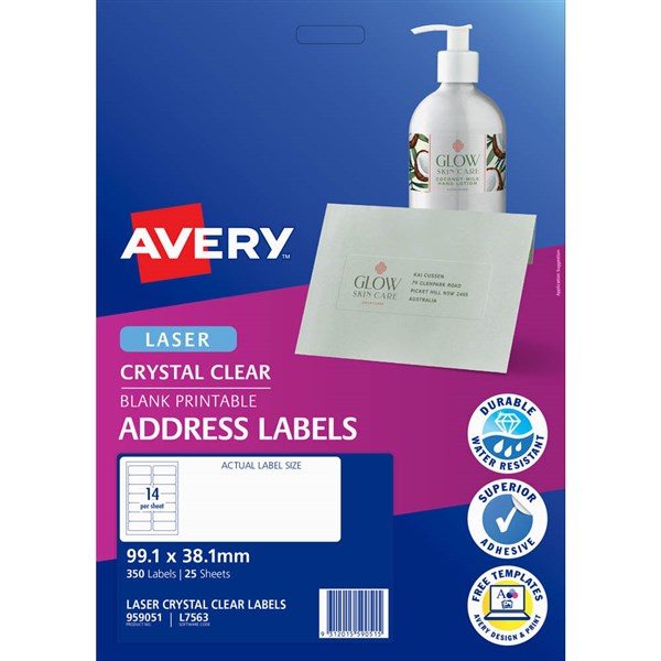 AVERY 959051 L7563 CRYSTAL CLEAR ADDRESS LABEL LASER 14UP CLEAR PACK 25