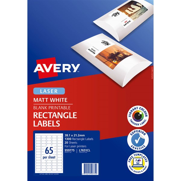 AVERY 959775 L7651CL MULTI-PURPOSE PHOTO QUALITY LABEL 65UP WHITE PACK 20