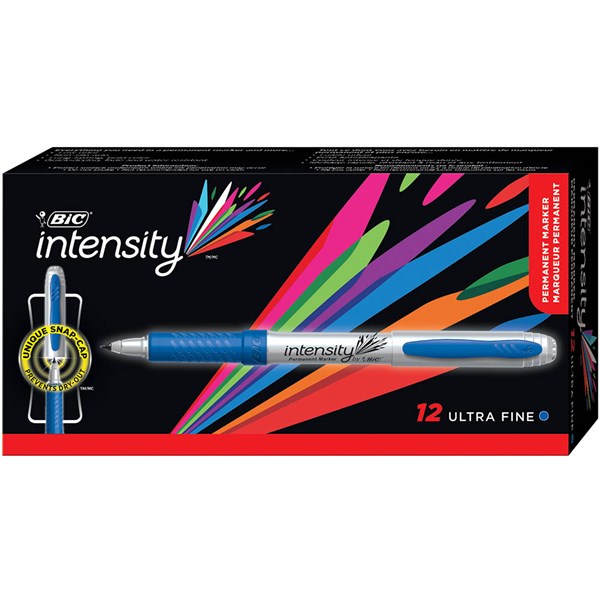 BIC INTENSITY PERMANENT MARKER BULLET ULTRA FINE BLUE BOX 12