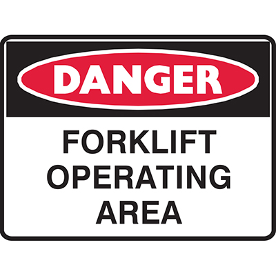 BRADY DANGER SIGN FORKLIFT OPERATING AREA 450 X 300MM POLYPROPYLENE