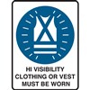 BRADY MANDATORY SIGN HI-VISIBILITY CLOTHING OR VEST MUST BE WORN 450 X 300MM POLYPROPYLENE