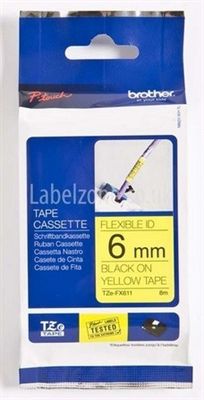 BROTHER TZ-FX611 FLEXIBLE LABELLING TAPE 6MM BLACK ON YELLOW