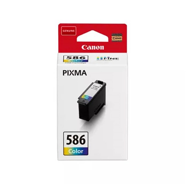 The Canon CL-586 colour ink cartridge contains cyan, magenta and yellow inks in a single cartridge, with a page yield of up to180 pages