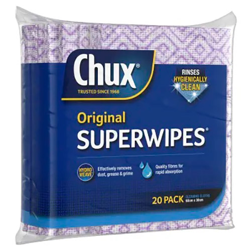 CHUX SUPERWIPES REGULAR 600 X 300MM WHITE PACK 20