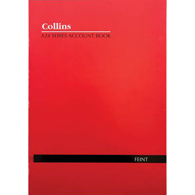 COLLINS A24 SERIES ACCOUNT BOOK FEINT RULED STAPLED 24 LEAF A4 RED