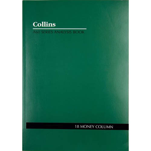 COLLINS A60 SERIES ANALYSIS BOOK 18 MONEY COLUMN FEINT RULED STAPLED 60 LEAF A4 GREEN