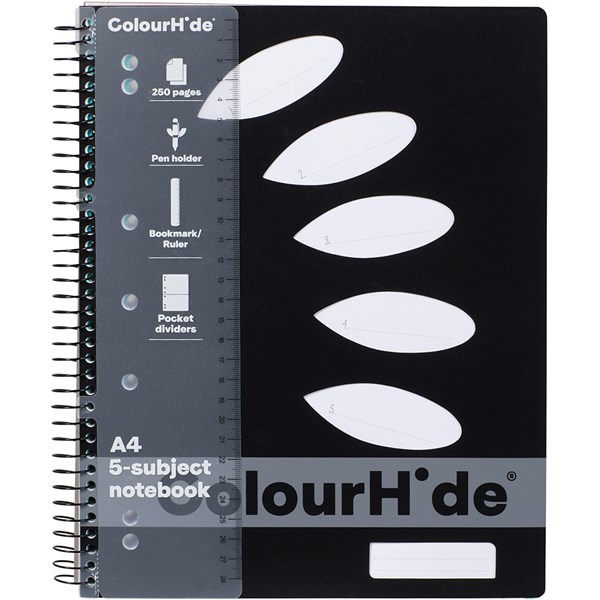 COLOURHIDE 5-SUBJECT NOTEBOOK 250 PAGE A4 BLACK
