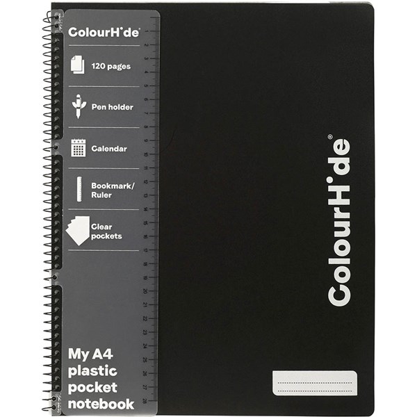 COLOURHIDE NOTEBOOK WITH POCKETS 120 PAGE A4 BLACK