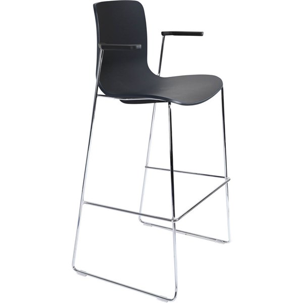 DAL ACTI BAR STOOL SLED BASE HIGH 760MM ARMS BLACK ARM-PADS AND CHROME FRAME CHARCOAL POLYPROP SHELL