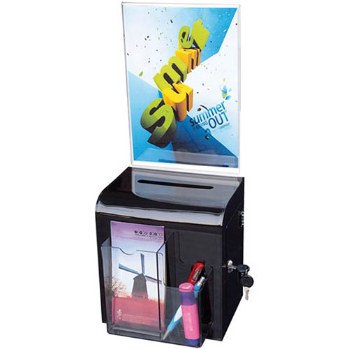 DEFLECTO BALLOT BOX LOCKABLE WITH HEADER PORTRAIT A4 SMOKE