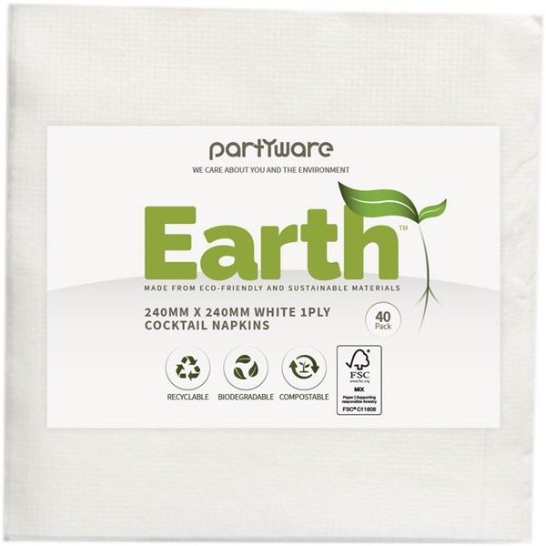 EARTH ECO COCKTAIL NAPKIN 2 PLY 240 X 240MM WHITE PACK 40