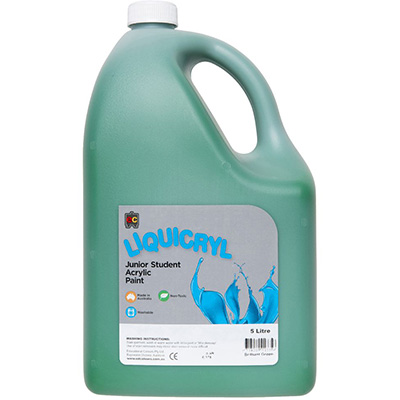 EDUCATIONAL COLOURS LIQUICRYL JUNIOR STUDENT PAINT 5 LITRE BRILLIANT GREEN