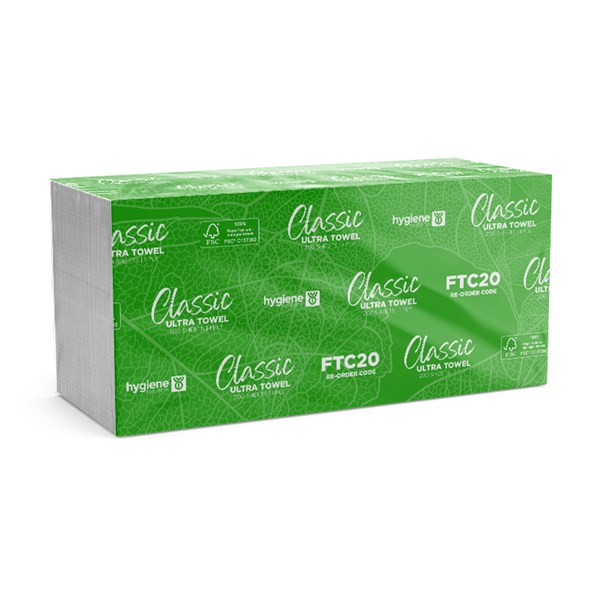 FTC20 Classic Ultra Towels provide a reliable and cost-effective hand-drying solution for high-traffic washrooms. Each 1-ply towel measures 24cm x 23cm with a compact 6cm folded width, designed for smooth dispensing and minimal waste. Supplied in a bulk carton of 20 packs with 200 sheets each, this product is perfect for commercial, industrial, and public facilities.FSC Approved for sustainable, responsible sourcing. Ideal for everyday use in busy washroom environments.