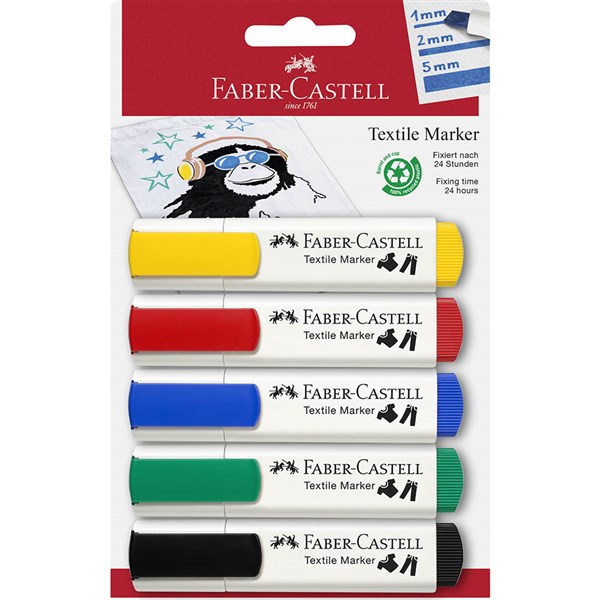 FABER-CASTELL TEXTILE MARKER ASSORTED PACK 5