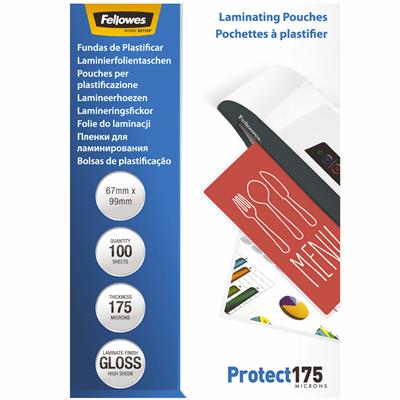 FELLOWES LAMINATING POUCH GLOSS 175 MICRON 67 X 99MM CLEAR PACK 100