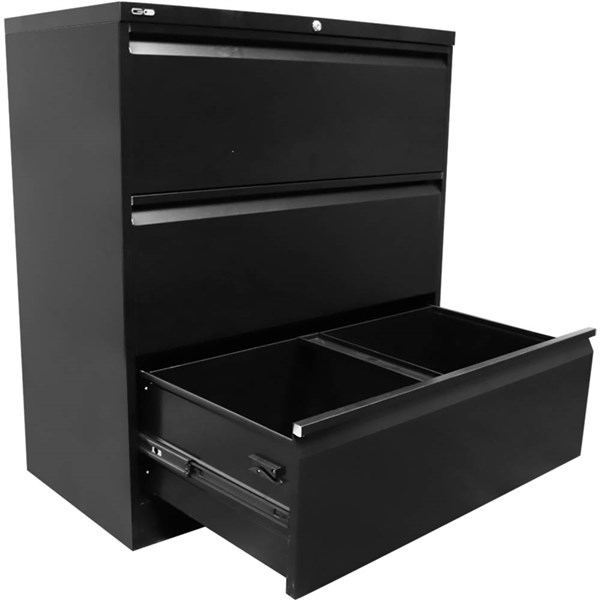 GO LATERAL FILING CABINET 3 DRAWER HEAVY DUTY 1016 X 900 X 473MM BLACK