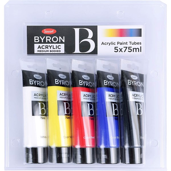 JASART BYRON ACRYLIC PAINT 75ML PRIMARY COOL SET PACK 5