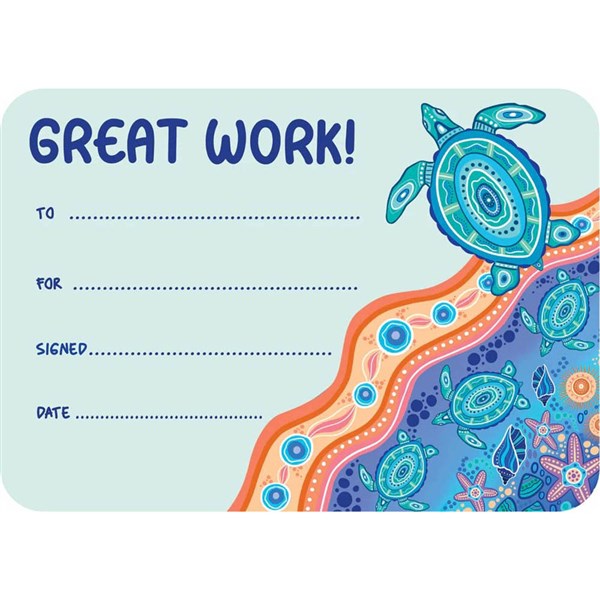 Recognise effort and achievement with the Ocean Country Great Work Certificates, featuring vibrant First Nations artwork by Holly Sanders