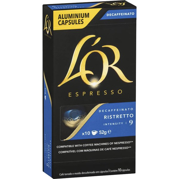 L''OR ESPRESSO NESPRESSO COMPATIBLE COFFEE CAPSULES RISTRETTO DECAF PACK 10