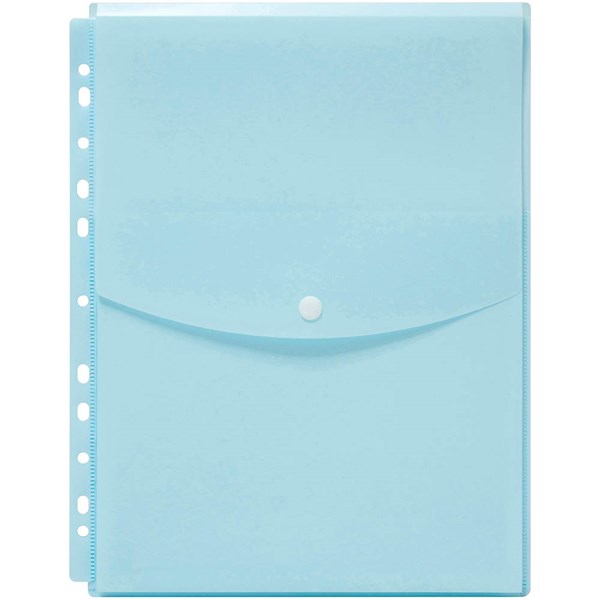 The Marbig binder wallet makes filing easy with its top button closure and is offered in a variety of popular pastel colours