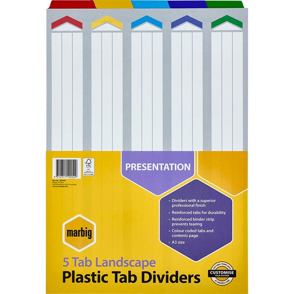 MARBIG DIVIDER LANDSCAPE MANILLA 5-TAB A3 ASSORTED