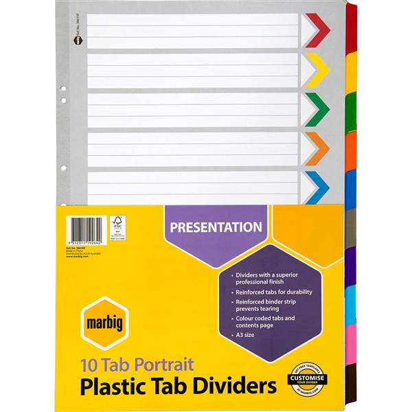 Marbig dividers are made from reinforced manilla board with plastic reinforced tabs and binder strips for durability and longer life