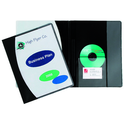 - Inside back cover with vertical pocker, CD/DVD and business card holder
