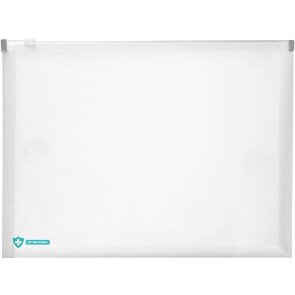 MARBIG PROFESSIONAL ANTIMICROBIAL DOCUMENT WALLET ZIP CLOSURE PP A4 CLEAR