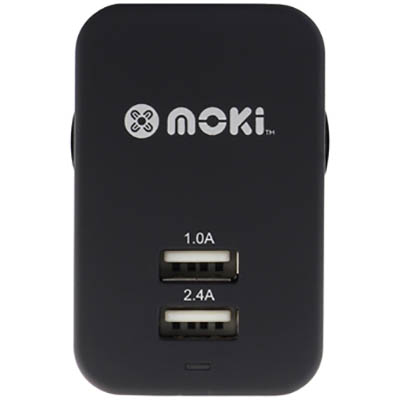 MOKI USB WALL CHARGER DUAL BLACK