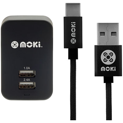- Wall Charger: Charge two devices at the same time with the Moki Dual USB Wall Charger