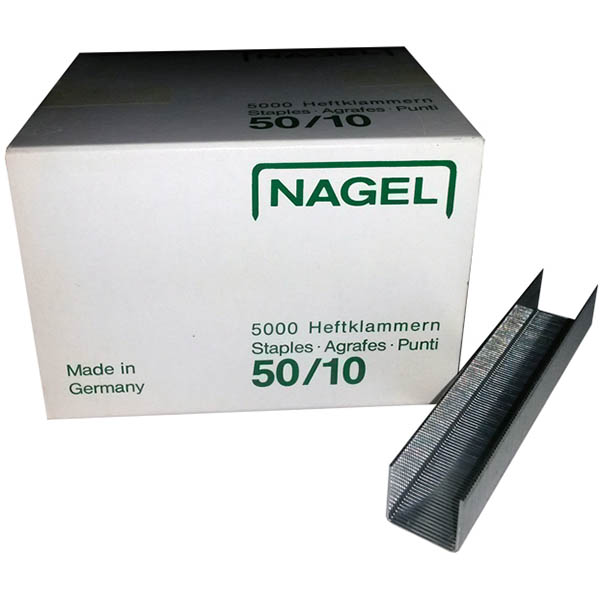 - All Nagel staples, whether standard or loop have uniformly bevelled, sharp tips that effortlessly penetrate cardboard, leather, textiles, plastics and wood