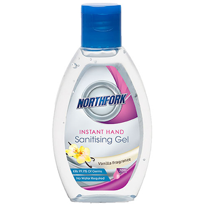 - Northfork hand sanitising gel kills 99.9% of common germs that can cause disease