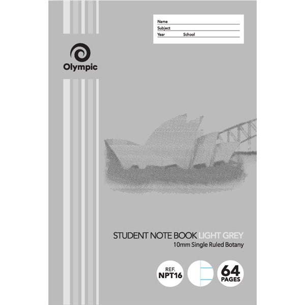 OLYMPIC NPT16 BOTANY BOOK NSW 10MM RULED 64 PAGE 55GSM 250 X 175MM LIGHT GREY