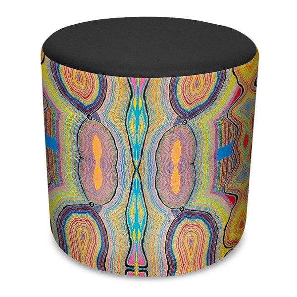 • It is also a unique commercial fabrics designed by Nelly Patterson (Indigenous artist) combined with K2 Commercial Black PU Leather to upholster the ottoman