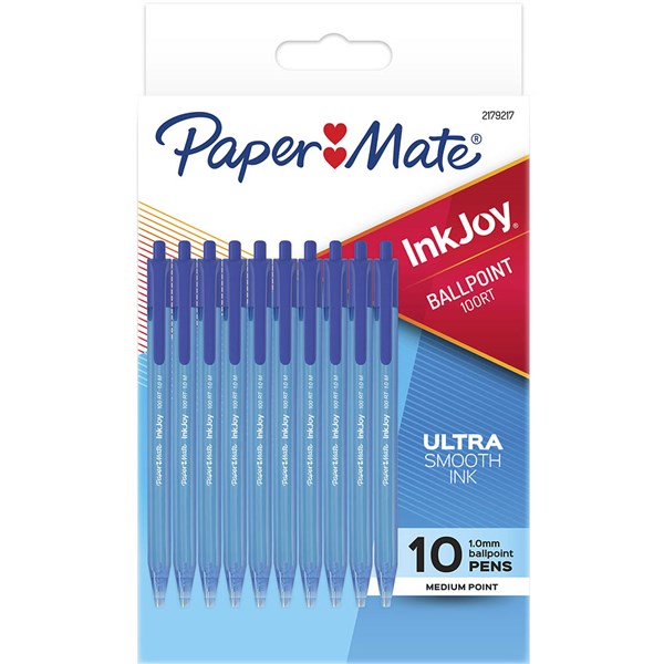 PAPERMATE INKJOY 100RT RETRACTABLE BALLPOINT PEN 1.0MM BLUE PACK 10