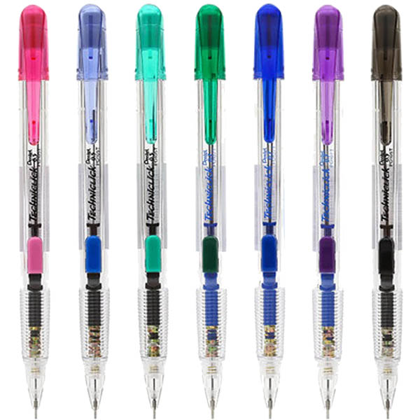 PENTEL PD105 TECHNICLICK MECHANICAL PENCIL 0.5MM CLEAR/ASSORTED BOX 12
