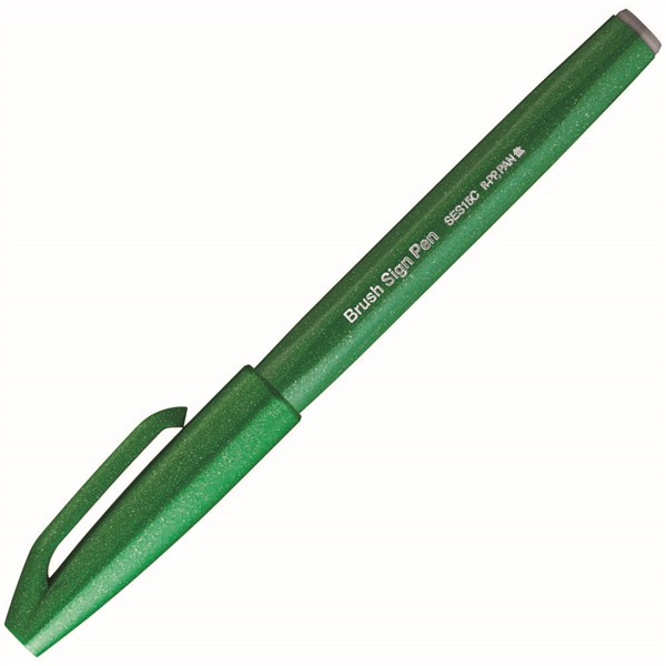 PENTEL SES15C BRUSH SIGN PEN MARKER GREEN BOX 10