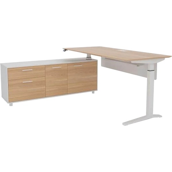 POTENZA EXECUTIVE ELECTRIC HEIGHT ADJUSTABLE DESK LHS BUFFET 2000 X 1820MM VIRGINIA WALNUT/WHITE