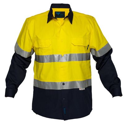 PRIME MOVER MA801 COTTON DRILL SHIRT LONG SLEEVE LIGHTWEIGHT WITH TAPE 2-TONE YELLOW NAVY 2XL