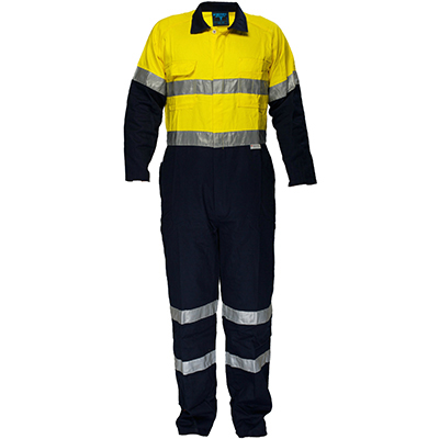 PRIME MOVER MA931 REGULAR WEIGHT COVERALL WITH METAL STUD CLOSURE AND TAPE 2-TONE YELLOW NAVY 102R