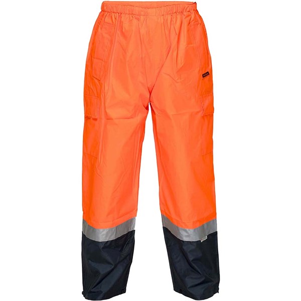 PRIME MOVER MP200 HI-VIS WET WEATHER CARGO PANT REFLECTIVE TAPE ORANGE NAVY LARGE TO EXTRA LARGE