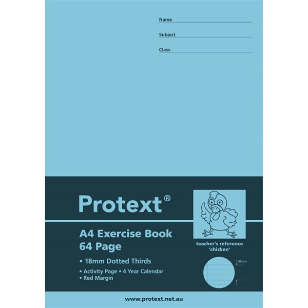 PROTEXT EXERCISE BOOK DOTTED THIRDS 18MM 70GSM 64 PAGE A4 CHICKEN ASSORTED
