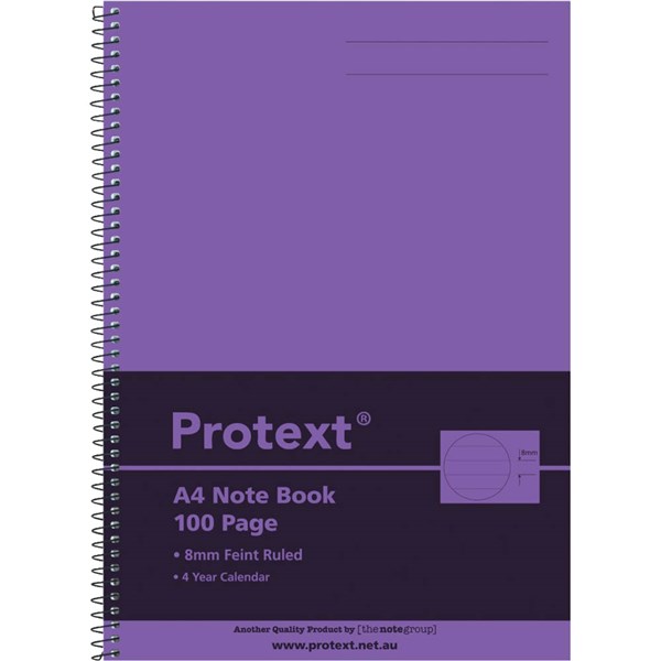 PROTEXT NOTE BOOK 8MM FEINT RULED 55GSM 100 PAGE A4 PURPLE