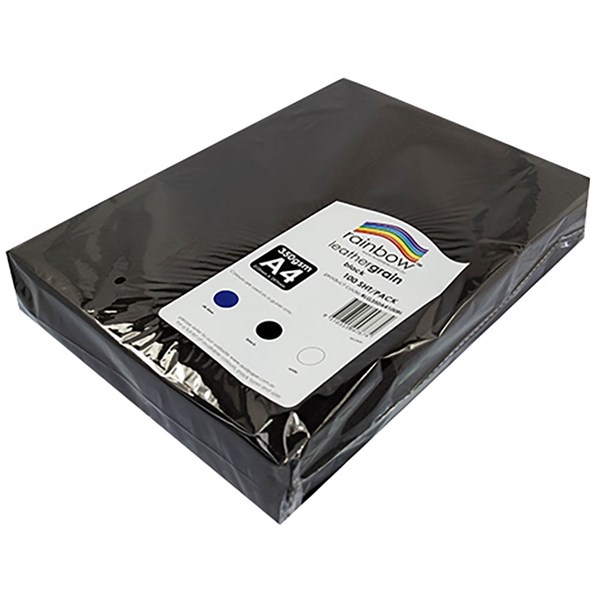 RAINBOW BACK BINDING BOARD LEATHER GRAIN 350GSM 100 SHEETS BLACK