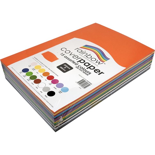 RAINBOW COVER PAPER 125GSM 255 X 380MM ASSORTED PACK 500